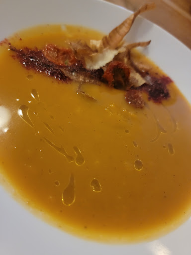 Read moreWe stopped in here on our way to Gullfoss. It was very cold and windy. We both ordered the soup (it was pumpkin and it was served with what one might Christmas spices - we were here in late November). It had a very nice creamy texture and good flavor. Just the kind of thing to warm you up. We each had a salad. My husband had the salad with langostines. I had the one with fresh veggies. Both salads came with garlic bread. My husband had a local beer and I had red wine. The person who waited on us was also the owner (I believe). At the end of our meal we chatted with him for a few minutes. It truly is a family run business. He said that his wife and daughter both work here. They make homemade chocolate and while it looked and smelled delicious we passed (just very full from lunch). I have read other reviews where people complained about prices, I felt that the prices were what one should expect- Iceland is expensive! It's currency is stronger then the Euro or the dollar, so it costs more for those of us who use those currencies. I was happy to support a family...