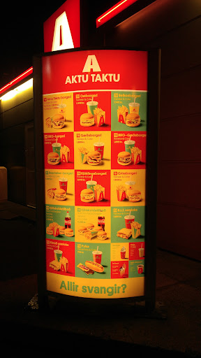 Aktu Taktu borgarl-So this place is very interesting because it is a popular fast-food restaurant in Reykjavik, and because it looks exactly like McDonalds-and I also heard it may be an old Mickey D’s that was converted. Overall, it was a decent place to grab a burger, fries, and a coke. The burger wasn’t what I expected as most of the fast-food burger joints in Europe taste much different than those in US, but to my surprise this one tasted very similar to home. Not a giant beef patty but it was grilled and the bun was soft and warm, the fries were very similar to McDonalds fries and that’s a huge compliment, they are skinny but not thin so they are the perfect size, they were hot and that was a plus, also they were very salty which I like so overall the burger fries combo worked out great for me and I would recommend if your in the capital of Iceland that you should definitely stop and try it. If you’re interested in seeing more of this place check out the episode I did (I was just starting) on my YouTube channel- it is called Travel Man Dan and I don’t mean to be spammy but if you’re interested check it out. Have a great day and I hope you get the chance to enjoy Iceland and Aktu...