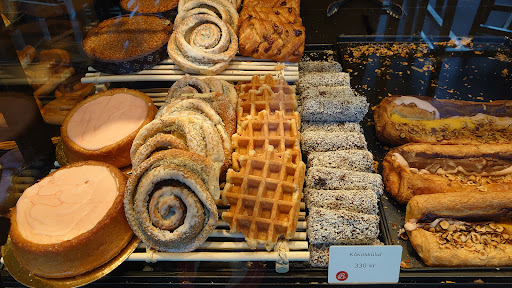 This Bakery/Café happens to be located at the entrance into Reykjavik city...if you are coming from KEF international airport..easily accessible and parking just outside. Very nice clean sitting area with great view to relax and enjoy light meal or just a cup coffee (various types) or tea.