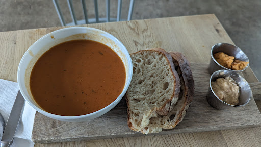 The soup of the day (Mexican soup the day I went), (classic plain) sourdough, and spread combo was delicious! The counter person let me try half and half chicken salad and paprika hummus spreads, both were great. The sourdough is the real star. I'd want to come back and try more varieties of sourdough and soup and spread, the pastries also looked amazing. I looked up this place because Te & Kaffe serves their carrot cake, but they only had full size cakes not slices when I visited at the end of the day.