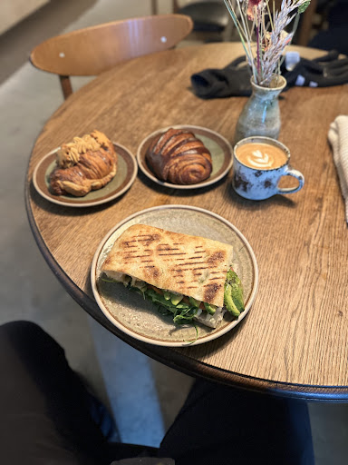 I tried the avocado sandwich, the hazelnut croissant, and the gingerbread croissant, all of which were fantastic. The avocado sandwich was fresh and satisfying, with perfectly ripe avocado and a balance of flavors. The hazelnut croissant was rich and indulgent, while the gingerbread croissant offered a unique, seasonal twist that was just delightful. My flat white with oat milk was smooth and perfectly crafted—a true testament to their barista skills.