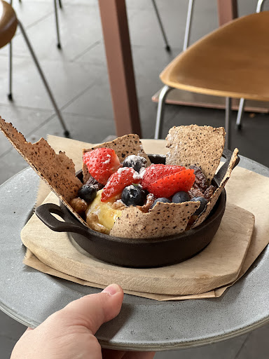 We were astonished when foods arrived, beautiful designated dishes. We ordered Lax open sandwich with tomato soup and carrots cake with cream. First is the sandwich, lax is fresh, the cream cheese apple salad on top is a plus, level up the texture, on top decorate with chips, red caviar added extra flavour and texture, toast was delicious with butter, the raspberry macaroon is not sweet (love it) with crispy skin^^ Next, the carrot cake is on my standard, perfect ratio of frosting + cake + cream, not as sweet as icelandic standard. I am very delighted to have meal here surrounded by plants, artworks and big windows with open-view. 🪴