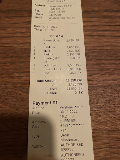Read moreDO NOT go here. Before 7pm there is a happy hour deal of get a bottle of wine and receive 2 free tapa plates. We asked for a certain wine and the waitress said it was not available but let us try a different wine that “was similar” she gave us a taste and we said it was great. I then asked if it was the same price as the wine we requested and she said it’s actually cheaper. We said great, we will take a bottle. When we went to the counter and after my credit card was charged we found that the wine was actually 2500 krona extra (not cheaper) than the wine we originally requested. I brought this up and she replied “oh I made a mistake I hope you enjoyed everything” and then hid in the kitchen. She did not accept guilt and/or correct our tab. Do not trust this place. They aren’t truthful and will up charge you without...