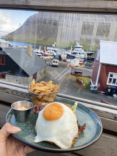 Read moreWhat a special find! Don’t be deceived by the menu being primarily burgers- every combination is thoughtfully arranged with delicious fresh ingredients, and are so filling! I had the Vegamot burger and my partner had the Blue Cheese burger and both were amazing. Great fries, too. The staff is so warm and welcoming, interacting with them just left you feeling good, on top of being full and happy from a delicious meal. They also have gluten free buns available and are more than happy to accommodate! If you’re thinking about stopping here for a bite while in Tálknafjördur, I strongly urge you to do it. You can also enjoy a stunning view of the harbor in the outside seating wrapped up with one of the provided blankets! Additionally, they also have a convenient store with all the necessities AND...