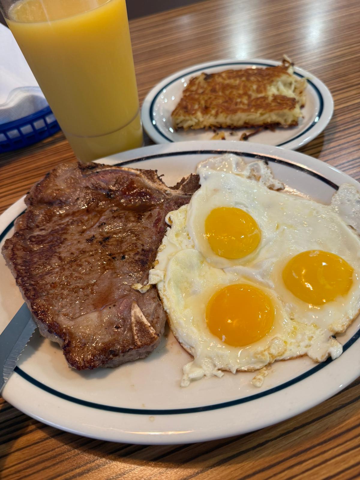 Placed my normal IHOP order of the T-Bone steak and eggs. Followed by changing the pancakes to waffle and an orange juice. I have made this order countless times and many other IHOP across the USA without any issues, not sure why I could NOT make the change of pancake to waffle here?