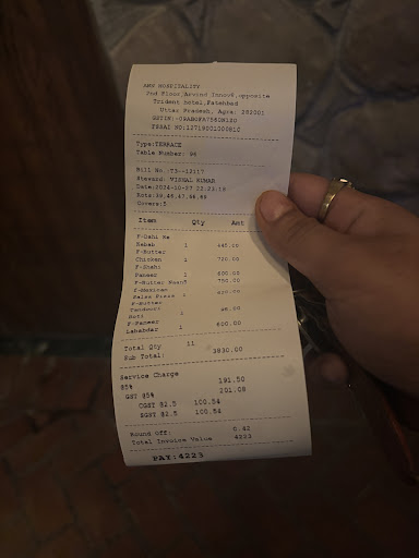 Read moreWhat to say, what not to say i am still confused. Let me start with the ambience and environment of the place The environment is very energetic, the sounds and the composition of the song will force you to dance on the stage. And the singer which has came for that night has a very soothing noise which makes your ear delighted and will refresh your mind. Now when i talk about the food, I want to say its awesome, i will definitely say that, if you have earlier eaten on rooftops of Agra, the food of this place will come in top in your list. Its very good and the quantity of the food in main course is also more compared to other rooftops. Now finally after appreciating this place too much i have still given 4 stars. Most of you want to know why? The reason is that its quite expensive place to visit,I actually judge the price of food by looking at the price of chapati or you can say naan. The price is 55 for cheapest chapati isn't it expensive. Acc. to me yes it is expensive. I have covered various rooftops of Agra. This is quite expensive but the quality is...