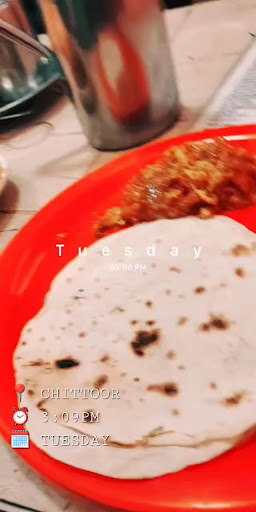 The only one and available place for roti in entire chittoor is this one.We(bachelor's) felt very very happy since in entire chittoor we cannot even find good dhaba for eating Rhoti.Hindi style oil less rhoti is main selling item of this place.Price is even less costing 5/- for one roti. All Veg and non Veg curries avaialble here, veg rice and chicken rice,starters available.Egg khema is the evergreen famous and special item of this place. Starters are spicy and Currys are tasty. Waiting time is 15 min. Parcels also undertaken here.The place is conjusted max of 15 members can sit at a time and place is small as compared to dhaba style.We can enjoy on weekends by eating here. It's a lovely place especially...