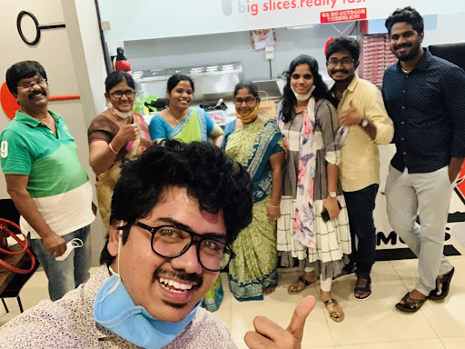 Pizza base is directly given by the franchise. Its not freshly baked base like domino's. Other than that pizza taste is good. If Domino's pizza is 5 then i will give 4 for this one. I tried medium blast veg loaded pizza. Which costed me 660 including 5% gst. Cost is bit high but we dont have more options in Gollapudi so can't say anything on price.
