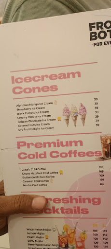 Very bad experience!!! Prices are like crazy and the quantity they give is soo little. Also, the frozen bottle vijayawada branch was way good in terms of quality and quantity also. Such little quantities they are giving. Not even handling over the bill to the customer. Jus asking to pay the amount. Scarcity of minimum basic supplies like tissues to be noted.Overall not a good experience. These guys just downgraded the brand's name. Taste wise also not at all good. For Belgian choclate waffle, they just poured choclate sauce in the middle and served. Same with choco lava cake. Not a good...