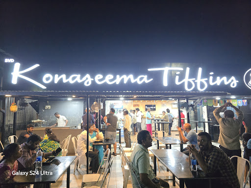 Konaseema Tiffins is a delightful spot for South Indian food lovers.The place stands out for its authentic Andhra style breakfast. The ambience is simple yet welcoming with clear surrounding and quick service.The menu includes a variety of tiffin items _fluffy idlis, crispy dosas, spicy pesarattu_all paired with chutnies and sambar. Their special Konaseema Allam pachadi (ginger chutney) adds a unique zest to the meal.Ghee roasted podi dosa is aromatic and indulgent.Nowhere else do we get such a superb tea as in Konaseema, and the taste and quality pulls a large crowd from morning to night. The simple rule is self service... first come, first served.The staff manages the rush efficiently and you don't have to wait for long.The price is reasonable.Toilet facility and roadside parking area available.lt is a must visit for anyone craving for healthy South...