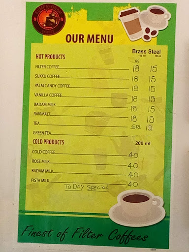 Read moreNice coffee , your mind gets refreshed after a days hard work or an early morning dizziness. They also serves to your functions. Coffee in brass glass is Rs18 and stainless steel glass is Rs 15. Try once you will...