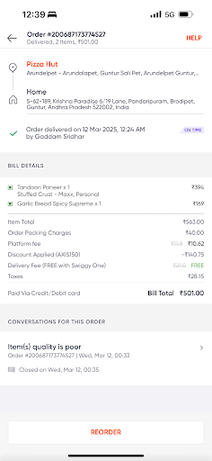 C. I tried to call Pizza Hut from the Zomato app to explain the delivered food situation. But the phone number they have in Zomato for Pizza Hut Arundelpet is wrong. Some random guy is picking up the call and saying this is wrong number.