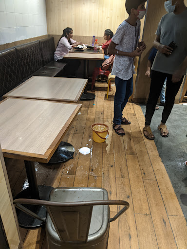 The service took atleast 50min to bring out my order. The AC doesn't work and water drips and floods the floor The ceiling is broken and all the service lines hang, looks very bad. There is no counter for pickup or takeaway. Delivery guys from Swiggy, Zomato take up one of the table and sit and wait for the order. Once the order is brought to them, that guy goes back to kitchen. At this point, the delivery guy himself takes out the ketchup, seasoning and one bag, packs the food himself with the seal/sticker and leaves. One of the delivery guy also opened up the pizza box and looked into. For takeaway, I think my order was misplaced and I was not given on time The costumers who were dining in, were out of patience and had to leave without ordering.