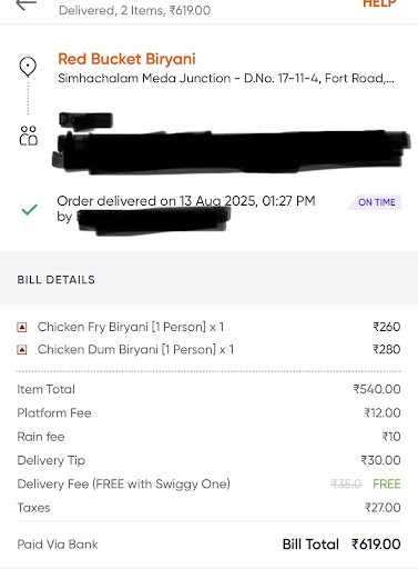 I take family pack of chicken biryani, in the pack there is only 5chicken pieces including 2leg pices, 3eggs, when I'm eating rice is utterly disappointed because there is no biryani flavour, and chicken smells badly, i called him and ask him your biryani taste worst, he said that I'm the only customer who complaint badly on them...he was not accepting his fault... finally im giving 0 rating, worst biryani taste in my life... Don't tryst who gave better reviews on rbb...