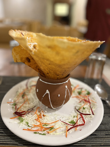 Ruchi Lounge is a Newer addition to their existing Ruchi Dosa outlet. It's located on the first floor with pretty large comfortable seating area as name implies. Management boasts about having individual chefs for each type of cuisine, extra staff for hygiene/cleanliness, using fresh produce, and locally fetched ingredients. Went during lunch, hardly anyone, could be it is newly opened. They offer regular menu as well as fusion version. Though it is popular Dosa joint, they offer north indian, indina chinese etc. Tried what they recommended Matka Dosa, served and cooked with paneer sabji in matka as they claim. That serving is good for two persons with an extra order of plain dosa. Also tried their recommended version of sweet lassi. They waited while eating and trying to serve or suggest which they probably felt being very hospitable. Overall food is okay perhaps my biases to original style dosas vs this variety which contains different ingredients as I was told. They made gravy with cheese, which conflicted with the paneer curry taste IMHO. However, the unique thing about this place is, dosa is served with paneer curry in a decorated matka with dosa on top and salad sourrounding the matka in the plate. Salad was fresh. If you are in the area, I'd...