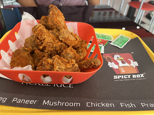 Read moreThey've tried to do a local version of KFC - lunch boxes, wraps, rolls, etc and a quickish service time. So a typical chicken lunch box is spiced rice and chicken popcorn, plus ketchup. Cute place with AC and basic tables. No loo though. Food's quite fresh and tasty, with a healthy healthy dose of spices, so be prepared! For a quick stop on the road, I would...