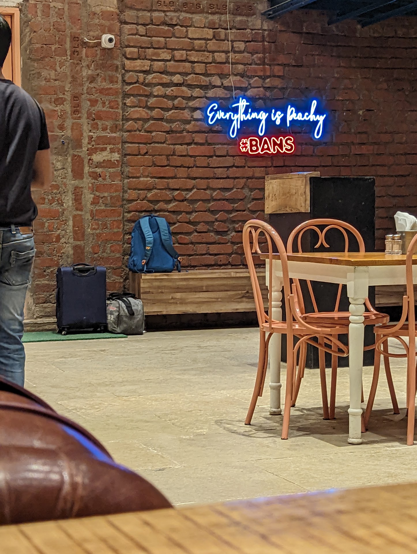 Read moreambience: not so great, but OK for social media pics.. the whole restaurant is like one badminton court.. but interior well done with simple and good looking art work.. the front door..obviously coloured peach, doesn't make any additional impression other than.. it is coloured in peach to suit the restaurant name..it is a makeshift not like a solid building structure like bliss, Minerva, ITC, or taj..or even robo diner..