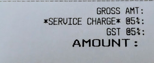 And the most important fact, you will be charged extra 5% without information as service charge and nowhere it is specified that it's gonna be levid.