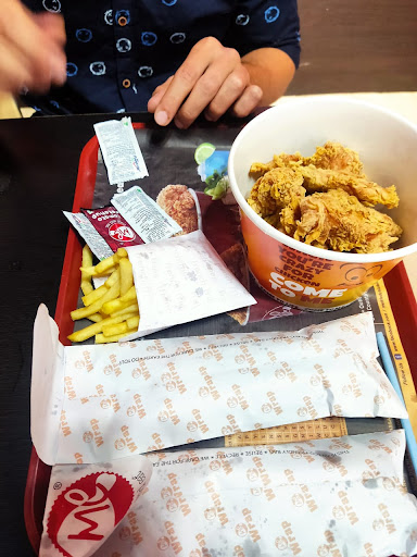 The food is distinctively microwaved. By distinctive, the inside was mouth burning hot and the outside is almost cold to touch, so when you bite into the food thinking it will be a warm meal it instead burns the inside of your mouth. The chicken fries are salty, spoiled food type to taste that is unpalatable. The sachet sauce are bad quality as well. Overall, the price you pay is not for the food, it's for the service and that's the worst type...
