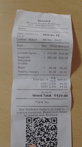 Read moreA Disappointing Experience at Alchemy, Jorhat I recently revisited Alchemy in Jorhat with my wife after a 10-month gap, and unfortunately, our experience was far from satisfactory. Given our busy schedules as working professionals, time management is crucial for us. We arrived at 1:45 PM, and I ordered the starter, which the manager assured would be served within 10 minutes. However, even after waiting for over 40 minutes, neither the starter nor the main course, which we ordered at 2 PM, arrived.