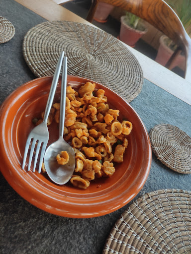 Food was nicely done. Only thing available from our original selection was pineapple teriyaki chicken burger. It was big fat filling burger, patty was crispy, sides were nice, sauces were right. I enjoyed it thoroughly. But it was a regular chicken burger with pineapple teriyaki sauce on the side. The name was a little misleading I feel. I was expecting the chicken to be cooked in teriyaki sauce or something. Other 2 dishes we ordered were outside of the menu and based on waiter’s recommendation because what we originally selected wasn’t available. One was spaghetti pasta (pretty traditional recommendation) in white sauce with Parmesan cheese and lots of Italian herbs. I had one bite and would pass it. Other was some soya based starter. Again out of menu. Don’t remember the name but it was nice. Melted in the mouth. Side sauces combination...
