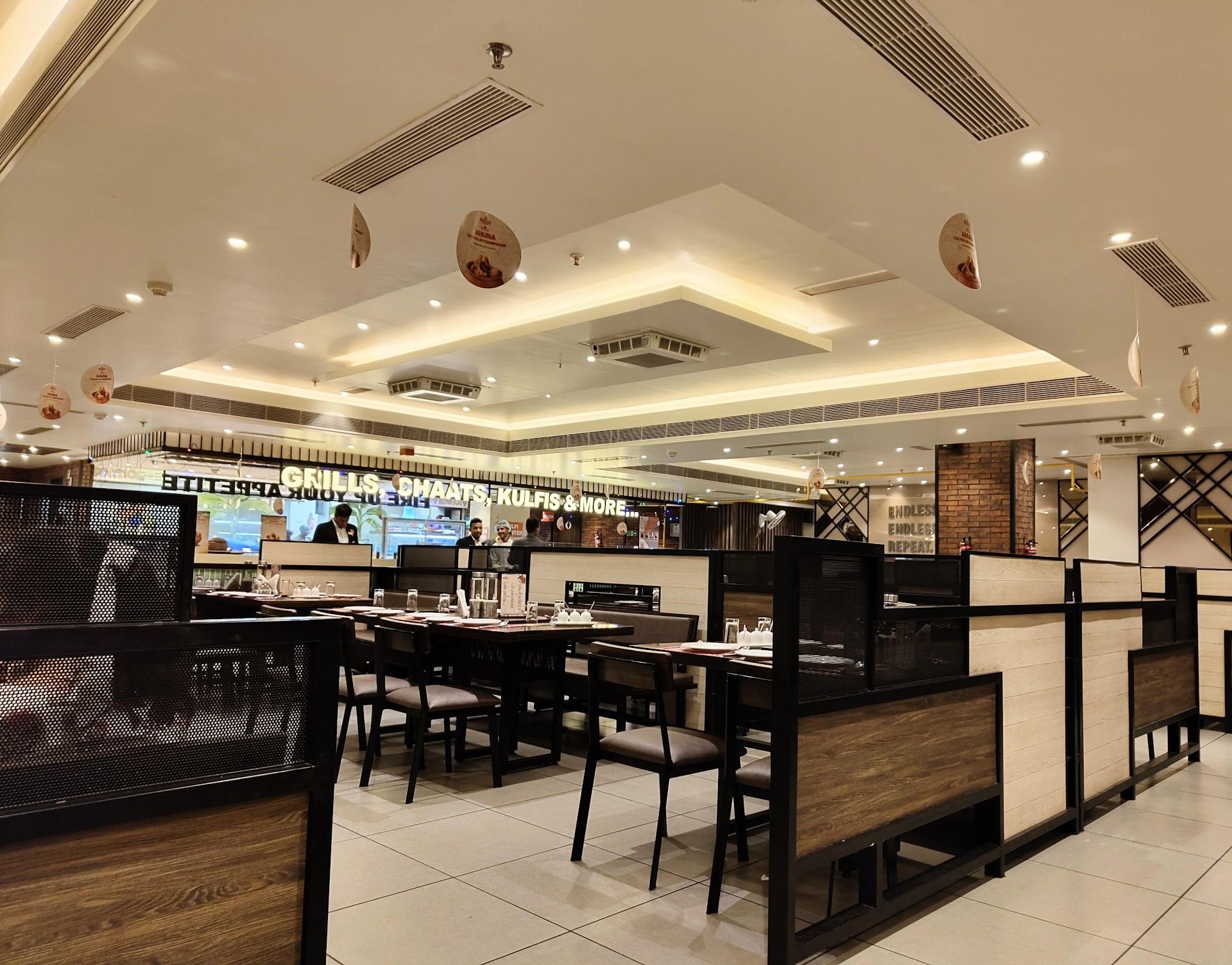 â There is also a LIVE COUNTER available where you can order chaats, crispy chicken(tbh they tasted like those from KFC), pasta etc. â The waiters are really courteous and stick to your needs. â No hard alcohol served. â Bill is brought to the table itself.