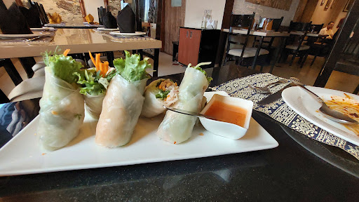 Read moreThis place has been in my bucket list for a long time and finally visited yesterday.. The ambience is beautiful with perfect lighting and music. Now, coming to food, we ordered Tom Kha chicken soup, Khanom Jeeb Chicken dumpling, Virgin Mojito, Goi Cuan Chicken wraps, Omurice and Aiskrim Goreng for dessert. #Tom Kha chicken soup is basically a coconut milk based thai soup which has slight sweet note to it, they provide with chilli flakes and lemon to adjust it with according to ur taste. Loved the taste of this soup was absolutely perfect added lemon juice n chilli flakes for the perfect spicky and tangy taste #Khanom Jeeb Chicken dumpling was a chicken stuffed siumai dumpling which was serve with 2 types of dips. It taste good. #Goi Cuan Chicken wraps is basically Vietnamese rice paper rolls with filling of glass noodles, boiled chicken and salad.. its a healthy option for a wrap tastes great with the dip they provided. #Omurice is a Japanese omlet rice in which the fried rice covered with an omlet. This was a bit different from the authentic version but the fried rice was amazing simply loved the smoky and sesame flavour. Aiskrim Goreng is a vanilla icecream fried with a crispy coat on it and garnished with chocolate syrup this is the first time I tried fried ice-cream and I loved it..the coat was crispy and warm with cool vanilla icecream inside is so good. I would recommend this place for great...
