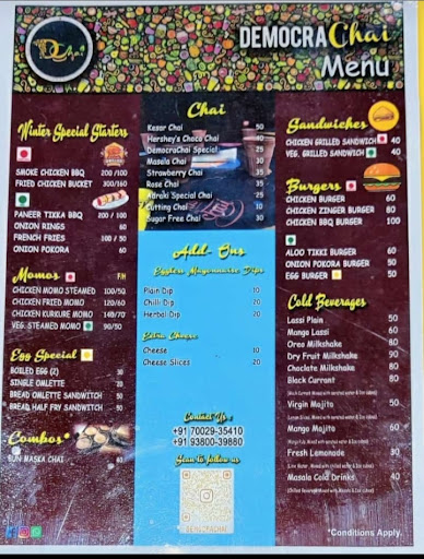 My 5 star review (My husband and I keep on visiting DemocraChai for evening bunch. The special chai is really very special. We have tried momos and sandwiches. All the food items are really finger licking good. The ambience and interior work is also very beautiful. A must visit cafe in...