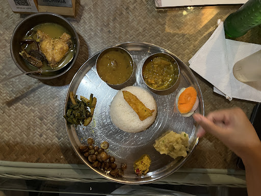 The star of my meal was the Naga Pork Thali, which I absolutely loved for its bold yet balanced flavors, showcasing the essence of Naga cooking. This thali is a feast, featuring a generous spread of dishes that highlight the cuisineβs signature use of minimal oils, fermented ingredients, and local herbs. The centerpiece was the pork cooked with michinga leaves (Naga Sichuan pepper), which delivered a unique, tongue-tingling sensation and a citrusy, aromatic kick thatβs unlike anything else. The pork was tender, smoky, and perfectly complemented by fermented bamboo shoots, adding a tangy depth. The thali also included steamed rice, a light dal, boiled vegetables with a rustic charm, fiery king chilli chutney for the brave, and a dry fish or soybean chutney that packed an umami punch. Other sides, like a small portion of chicken or pork with bamboo shoots, rounded out the platter, ensuring variety in every bite. The michinga leafβs distinct flavor tied the dish together, making each mouthful a celebration of Naga culinary heritage, which often emphasizes smoking and fermentation over heavy spices. The portions were substantialβenough for one with leftovers or to share for lighter eatersβand priced reasonably, likely between Rs. 300-500, offering great value for such an authentic experience. For those curious about other options, the menu also features Assamese thalis with fish or duck, Naga smoked pork variations, and even some Chinese-inspired dishes for broader appeal. Pairing the thali with a traditional rice beer added a refreshing, cultural touch.