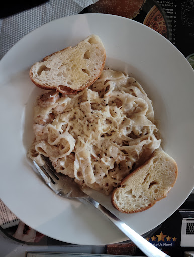 cons: the service is a little slower as compared to other restaurants in general. though I do think that the solitude the place offered me was worth it there is not much variety in the available books, and there is only one bookshelf. if you happen to like them, that's great, but there is not a large selection to choose from. some of the seats/sofas have considerable stains and thus appear a bit dirty. the music they played the whole time was just pop music that was popular a few years ago and is now annoying to listen to. I get that not everyone has the music taste, so that's fine if someone happens to like it. the pasta I got (as mentioned above) was comparatively small in portion, and made me need another dish. I ordered the bbq chicken burger next, and though it was alright, I wouldn't call it good. it was also difficult to eat, one of the reasons being that the bun was crumbly the writings/slogans around the walls of the place are veryy cheesy. I know that's just because that's what's probably popular, but I didn't like it regardless. there is not a lot of parking space around; we had to park a bit far down the street.
