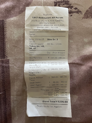 In conclusion, 1947 Restaurant offers an extraordinary dining experience that leaves a lasting impression. The combination of a stunning ambience, outstanding food, and a chef Praveen Bhandari who is truly a master of his craft makes it a must-visit for anyone looking to enjoy the finest in...