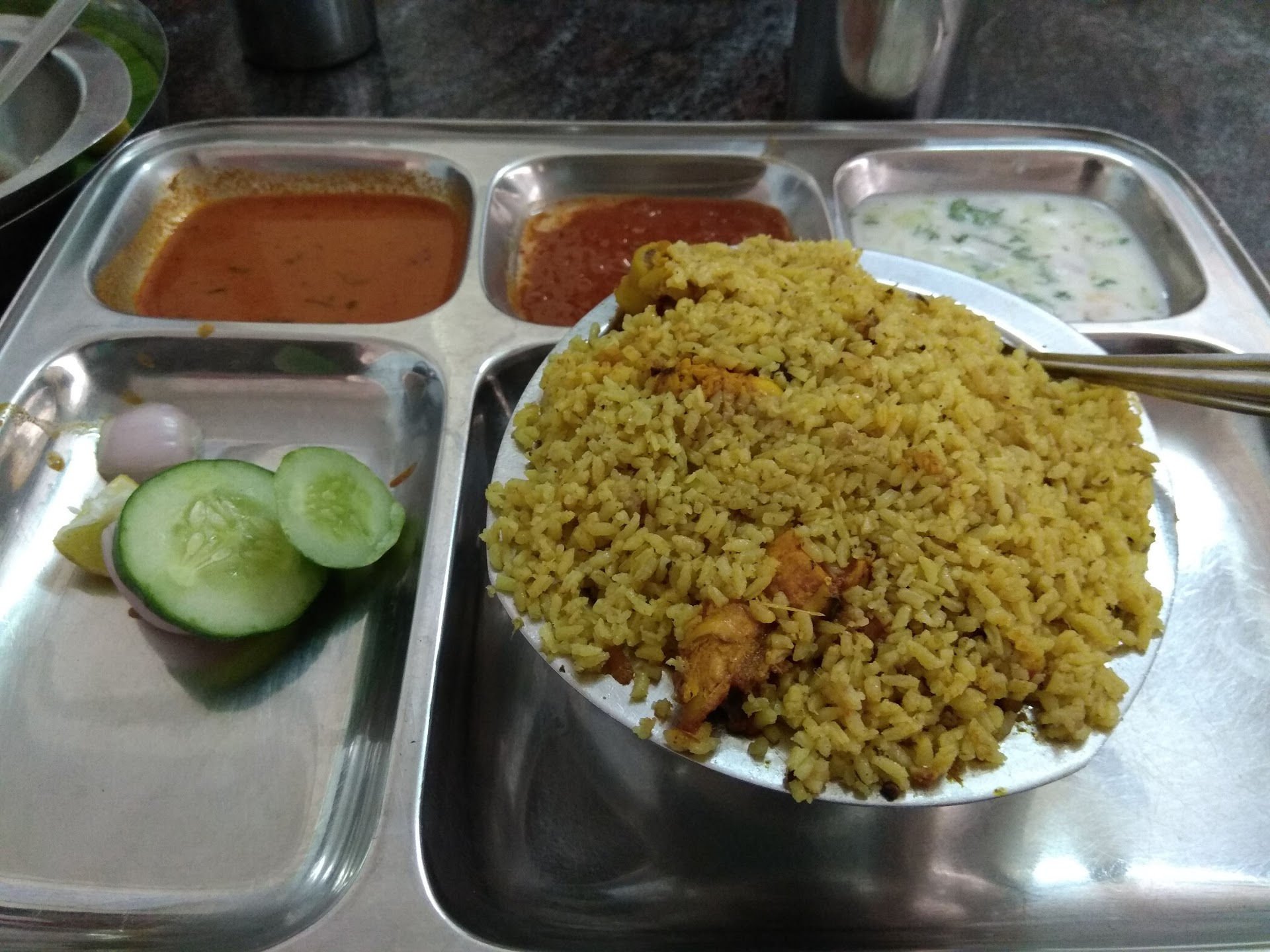 We ordered Nati chicken Meals(4/5), chicken Leg fry(5/5) along with white rice(4/5), to our surprise the white rice was served with 2 curries and salad! So this can itself become a meal with the chicken fry item. Coming to the meals- there was nati chicken in Masala style(4/5), served with egg Masala(5/5), green gravy(quite exotic 5/5), salad and ragi balls/parotha(5/5! All the dishes were excellent, none of them disappointed and therefore we went ahead and tried the Biryani rice(4/5) which was again satisfying. Overall a good experience. We went at 4pm on Friday and there was no rush and got quick and exclusive service, the other important thing and the reason for a 5-star is their availability from lunch to dinner! A lot of the restaurants would close after lunch around 3pm or 4pm however this place goes on and continues to serve the entire menu and freshly prepared through the time. Now we went on a weekday so it might’ve been less volumes but still full marks to the facility. Go here for the food!