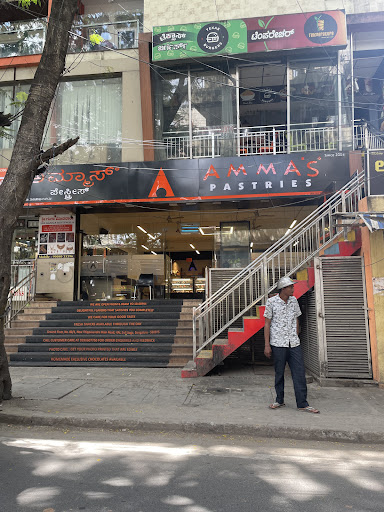 Read moreAmma's pastries is a 5 star brand and there is no doubt about it. I have given a 4 star coz i was not satified as a customer. Located in a prominent area, unlike other stores which i have visited in Mathikere and Malleshwaram, this store was a little bit on the downside hence the 4 star. Did not make the purchase coz i was not satisfied with the quality of cake on display which seemed like it was old, I have seen the very same cakes on display in other stores to be having a fresh look and instantly makes one crave for it. The store was not crowded too compared to the other stores,even then the staff was a bit slower with the customer service, it took them a while to take the order so i had to leave the place. However, the store is clean and staffs are kinda okay i guess. Two wheeler parked in the entrance of the stairs makes a customer visit uncomfortable, a no parking sign might keep the footpath parking at bay. Parking for 2 wheelers is fine but not 4 wheelers. Not accessible for differently abled.