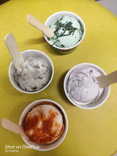 Read moreA nice and cozy small ice cream shop serving the most natural ice creams that I've had. Loved their Guava Glory flavour with real guava pieces and added chilli powder and salt for an even more familiar taste. Also tried the strawberry blast, again with real strawberry pieces. And the texture was rich, creamy and smooth, just lovely! I also tasted a spoon of the Pani Puri flavour and that was amazing too. We had their medium size cup and were pleasantly surprised that such good quality ice cream came at just Rs.90! Ended up buying a box of Guava Glory to take home with us. (And they actually packed us the chilli...