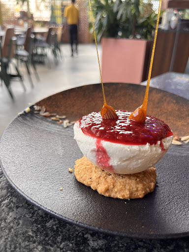 The second dessert was a classic Phirni, with a very berry twist. Served in an edible dark chocolate cup, and topped with a sweet sour berry compote, it was a beautiful play of a sweet classic indian dessert with a very international sour berry topping, that just made sense in the palate, a perfect end to the fabulous meal.
