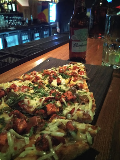 āŗChicken JalFrezi Naanza A commoner pizza served on naan bread. The base felt a little more chewy than I preferred.