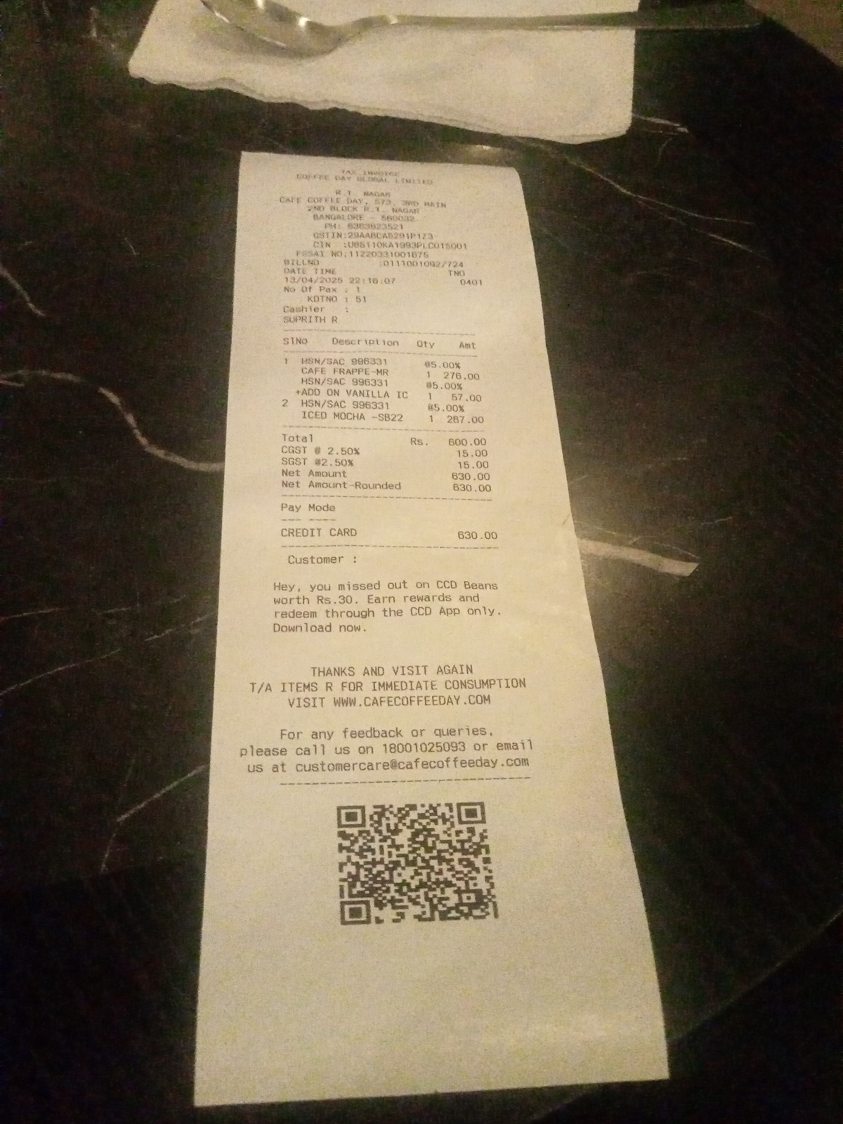 I hope this message finds you well. I am writing to formally bring to your attention an incident involving Mr. Suprith, a regular employee at your RT Nagar branch in Bangalore. As a loyal customer of Coffee Day, I have always appreciated the quality of service provided, but recently, I experienced a situation that has left me deeply concerned.