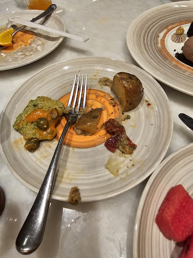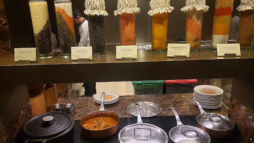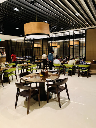 Cons: Firstly, being a 5 star property they don't have a menu for choosing a Mocktail. They will just verbally tell you what is available and you need to pick one from a short list. Don't expect a wide range of food. The foods are limited for the price. Live counters: a. They have like Italian live counter with 3 different types of pasta with 3 different sause. Tried all but everything is bland and not upto the mark.The one we have at home for 10-20rs would be much tastier. b. They have a so called live seafood section. With some small shrimps, 3-4 types of sad looking fish, squid and octopus which looked like they had some tough time getting to this place. All the items presented in the display looks pretty old and not welcoming at all. c. I asked for a Red snapper fish and a piece of grilled chicken. The red snapper fish served was quite small and nothing like what they displayed. And sad part is they cooked the fish and a fillet of chicken in same pan. So the chicken had a pungent fishy smell and was very tough to eat. d. The fish was very smelly. I am sure that the fish was not at all fresh. And chicken was bland with only bad fish smell in it. So after tasting this in live seafood section, I did not had guts to try any other items e. There is a live roti counter with 4 veg and 4 non veg curries. Nothing interesting like one shrimp, chicken sukka, and couple other in nonveg items. In veg it's standard liek dal makhanni, veg kadai etc. Which was standard and can get the same in any 599rs buffet. f. Live chat section with decent options. Like papdi chat, pani puri, samosa chat and one other. . Which was okay but taste is average. g. They had a Glazed duck dish. I was looking forward to taste it but it was cold and did not taste good for me. Not sure if it was supposed to be like that. There was one salted sea bass fish initially looked good but people curve the fish themselves so it's messy. But taste was decent. Desert were decent with lot of Cakes. It's like they have full round cakes and you need to cut it and take a piece. Which would get messy after people start cutting themselves. But taste was decent. They have like salad section and bread section. Which was ok ok nothing eye catching like it was standard. But breads were home made I guess. They had japanese sushi section as well but as I stated earlier the fish used hear, did not feel fresh at all. All the sushi had relatively bad smell for me. Did not felt good after trying it out. And few other fancy items which available like chicken dish in coffee cup covered in some puff pastry but they were bland as well. With respect to Sushi, the sad part is that they have something called as veg Sushi and it has a strong smell of fish as well. There was a veg and non veg biriyani pots but taste was average.