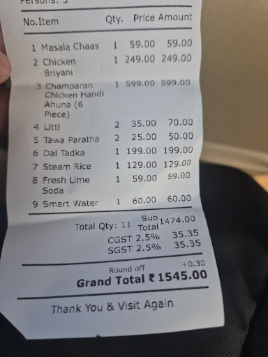 Read moreAwesome place to experience authentic champaran delicacy. In our family we typically eat dinner early and at 7:30 pm we were the only guests in the place yet the service took slightly longer. But once served, everything we ordered was damn good. Probably mix veg pakoda were a tad bit more oily but not compromising on the taste. Chicken banno kebab were soft juicy and sumptuously tasty. Litti chokha was surely one of the best you can find in Bangalore. and the hero of the day champaran chicken was rightly spicy with bursts of balanced flavours and very soft tender chicken. Tawa rotis were homelike and with Laal maas gravy is just too good and finger licking.