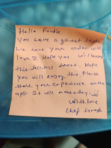 The chef and the management are really humble and stress on customer satisfaction. I had ordered online and they accidentally missed the crispy noodles of American chopsuey, on a single call the management arranged the crispy noodles that too with a chopsuey so that I as a customer don't have to eat cold chopsuey. The personalized note from the Chef and management in the home delivery really sets a trust bonding.