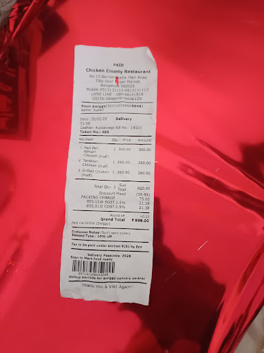 Read moreBest broast chicken or grilled chicken ever tasted in Arabic taste... Especially shawrma in Lebanese cuisine was superb... Grapes juice is also one of the finest beverage served in Chicken County .This restaurant is situated in a strategic location on the busy Bannerghatta Road nearby Diary Circle. Parking is a concern for four wheelers but still you may find one in the by lanes. Some of the food that you get here is lip smacking. The sure shot try that you should go for are the following,. ghee rice, chicken dum biriyani, mutton dum biriyani, chicken lolly pop, chicken Kebab, punjabi chicken gravy, tandoori chicken, malai tikka, grill chicken, seer fish slice, dal fry and finally the ceylon porotta. Their Mango Milkshake is very good seasonal drink. The above mentioned dishes will surely make you crave for repeated orders over the time as I'm sure you will relish them.