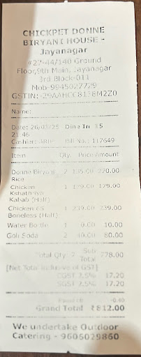 Chickpet Donne Biryani House, Jayanagar Located at 27-44 140, Ground Floor, 9th Main Rd, Jayanagar 3rd Block, Bengaluru, this restaurant is well-known for its signature Donne Biryani.