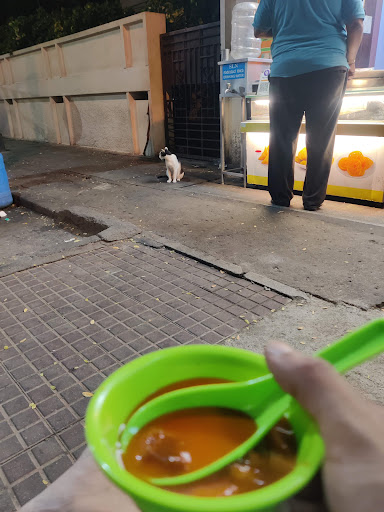 ➡️ Ambience - External seating on a 'Katte', in the Netkalappa bus stop, opposite to the joint or standing and eating.