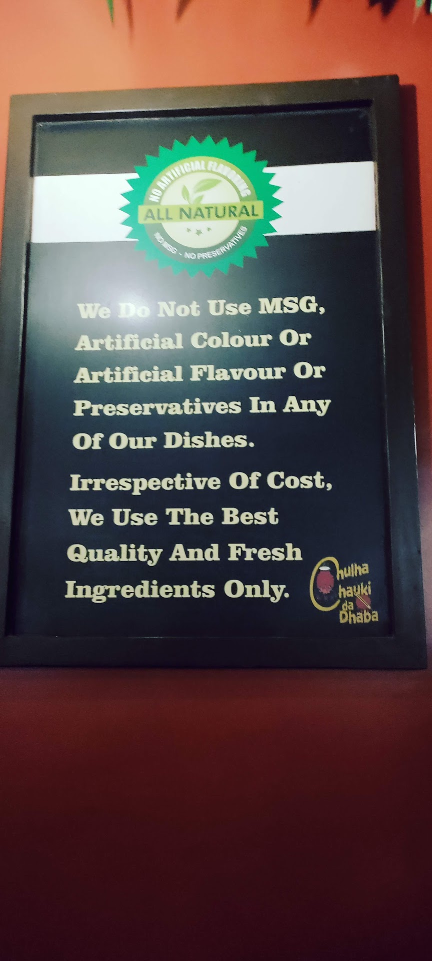 First and foremost, the concept of Chulha Chauki Da Dhaba is charming and unique. As soon as we entered, we were greeted with a warm and inviting ambiance that perfectly recreated the rustic atmosphere of a traditional dhaba. The decor, with its wooden furniture and traditional artifacts, added to the authenticity of the place.