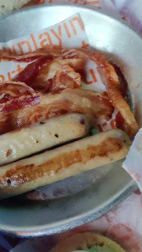 So, we ordered the Sids very posh breakfast; it’s basically an all-day English breakfast combo. You get (there are a lot of combos you can try in this, but this is what I chose) hash browns, baked beans, cheese omelette, bacon, sausage, cookie, white bread, and bread and jam. The hash browns were crispy on the outside and soft on the inside, just perfect. The Baked Beans were a little tomatoey for my taste; I also got a strong rosemary flavour, which overpowered the dish with little hints of garlic and black pepper. The cheese omelette was soft, fluffy, cheesy, and beautifully cooked. The Bacon, however, I found to be dry but not crisp, if you know what I mean, though it did not lose its bacony flavour. The Sausage was soft and greasy, and this too had a very strong rosemary flavour. The Cookie was a nice accompaniment for the breakfast combo; it was sweet and dry, just like a local bakery cookie. You get white bread in this combo, which was not toasted, along with butter and jam. I got the Mocha for the beverage; it was just fine, nothing worth mentioning.