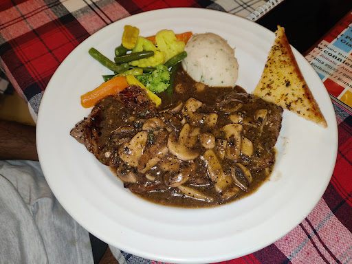 Despite these minor drawbacks, Connie's Steak House deserves high praise for its exceptional food quality, efficient service, cleanliness, and reasonable pricing. With its mouth-watering steaks, mind-blowing pasta, and prompt service, it offers a memorable dining experience. While improvements in the sweetness of beverages, the addition of air conditioning, and the provision of a parking area would further elevate the restaurant's offerings, these factors do not overshadow the overall excellence of Connie's Steak House. I would confidently rate this establishment 4.5 out of 5 stars, deducting 0.3 points for the lack of air conditioning, 0.1 points for the excessive sweetness in the drinks, and 0.1 points for the...
