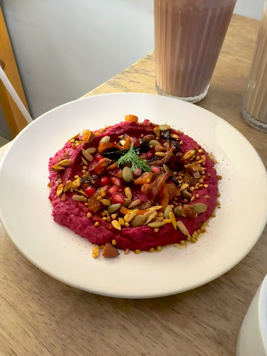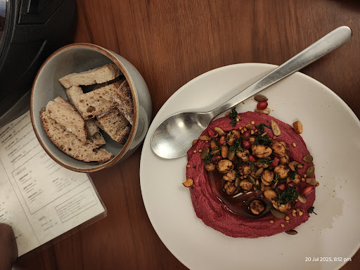 Service – 2/5 The main reason we’d never visit this cafe again is because of the service. When we entered, the experience was confusing no one approached us, no waitstaff gave any directions or seating help. The place looked full & it took us a good 5–10 mins to find a seat. Now for the disappointing part: we placed our order - beetroot hummus at around 7:35 PM. The cafe closes at 8, so the waiter asked us to order quickly, which we did. But they failed to inform us that the carrot salad which was part of the dish wasn’t available. It was only after we asked about it that they brought out the chef, who explained that they didn’t serve it because it wasn’t fresh.