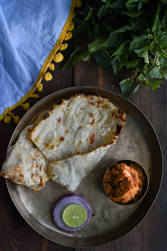 • Kashmiri Naan - Kashmiri Naan is Nutty & Tasty, liked for Breakfasts & served best in tea parties. This Kashmiri naan stuffed with a sweet cashew, Almond & Cherry paste. It was really good in taste and it was a good combination with the gravies.