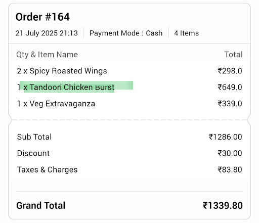 When i asked for the bill they provided me with the kot .