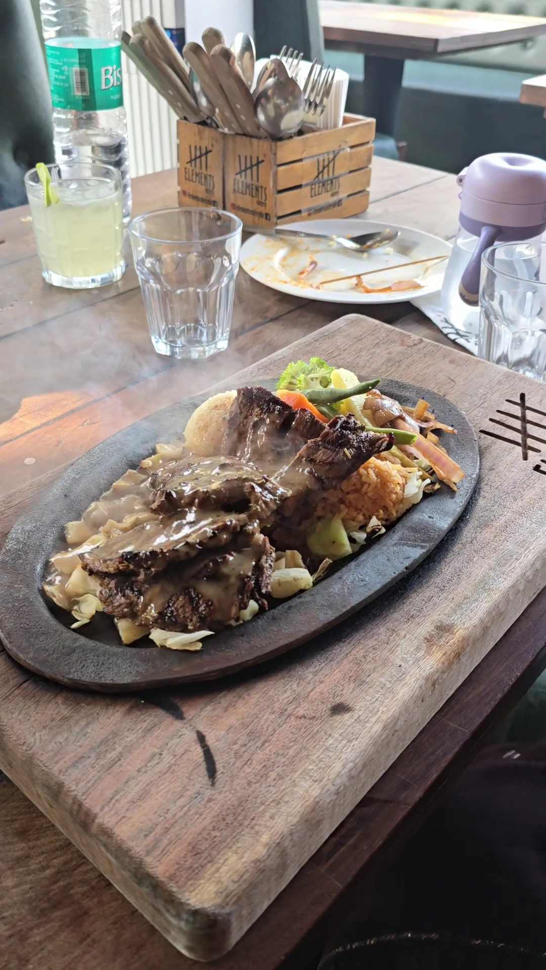 Read moreI recently dined at Elements and was absolutely thrilled with the experience, particularly when it came to their steaks. From the moment I walked in, I was welcomed with a warm atmosphere and attentive service. For starters, we were given complimentary bread with a delightful garlic butter spread that set the tone for the evening. I ordered the rib steak, cooked medium-rare, and it was nothing short of perfection. The marbling was exquisite, leading to a tender and juicy bite that melted in my mouth. The seasoning was spot on, enhancing the natural flavors without overpowering them. Each bite was accompanied by a rich, savory flavor, and the steak was cooked exactly to my specifications. The sides were equally impressive; the roasted vegetables were fresh and flavorful, and the truffle mashed potatoes were creamy and decadent—an excellent pairing for the steak. Overall, Elements is a must-visit for steak lovers. The combination of high-quality cuts, perfect cooking techniques, and a welcoming ambiance makes for an unforgettable dining experience. I can't wait to return and explore more of their...
